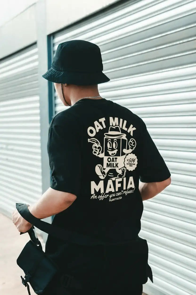 Oat Milk Mafia - Oat Print Oversized T-shirt - Black