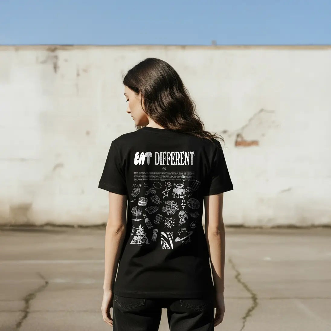 Featuring our ‘Eat Different’ double-sided design, this one’s packed with playful vegan iconography - from mushrooms to tahini, tofu to tigers. It’s our love for food, ethics and graphic storytelling, all rolled into one very wearable piece.